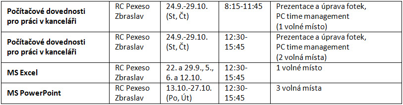 Účast v kurzech je BEZPLATNÁ.